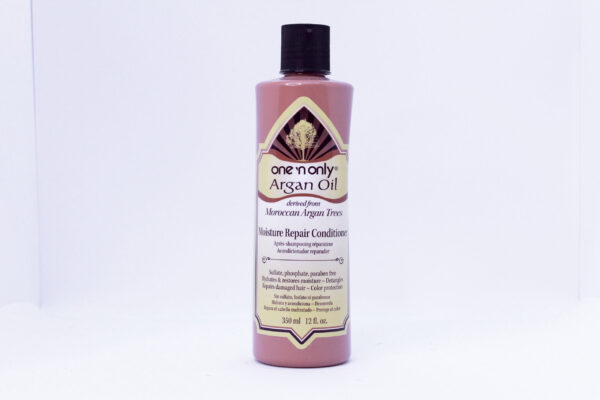One ‘n Only Moisture Repair Conditioner With Argan Oil detangles, reconstructs, and strengthens all hair types and textures. A hydrating conditioner with a blend of Acacia Collagen and nourishing shine inducing ingredients to revive dull hair, repair split ends, and improve manageability. Pair with One ‘n Only Moisture Repair for best results.